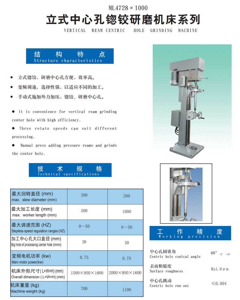 ML4728×1000立式中心孔锪鉸研磨機(jī)床